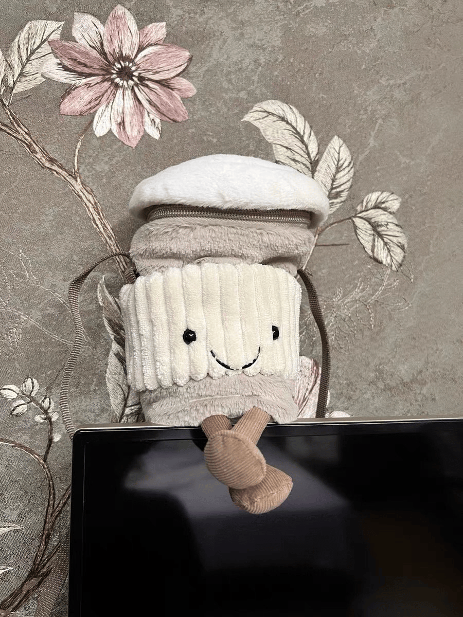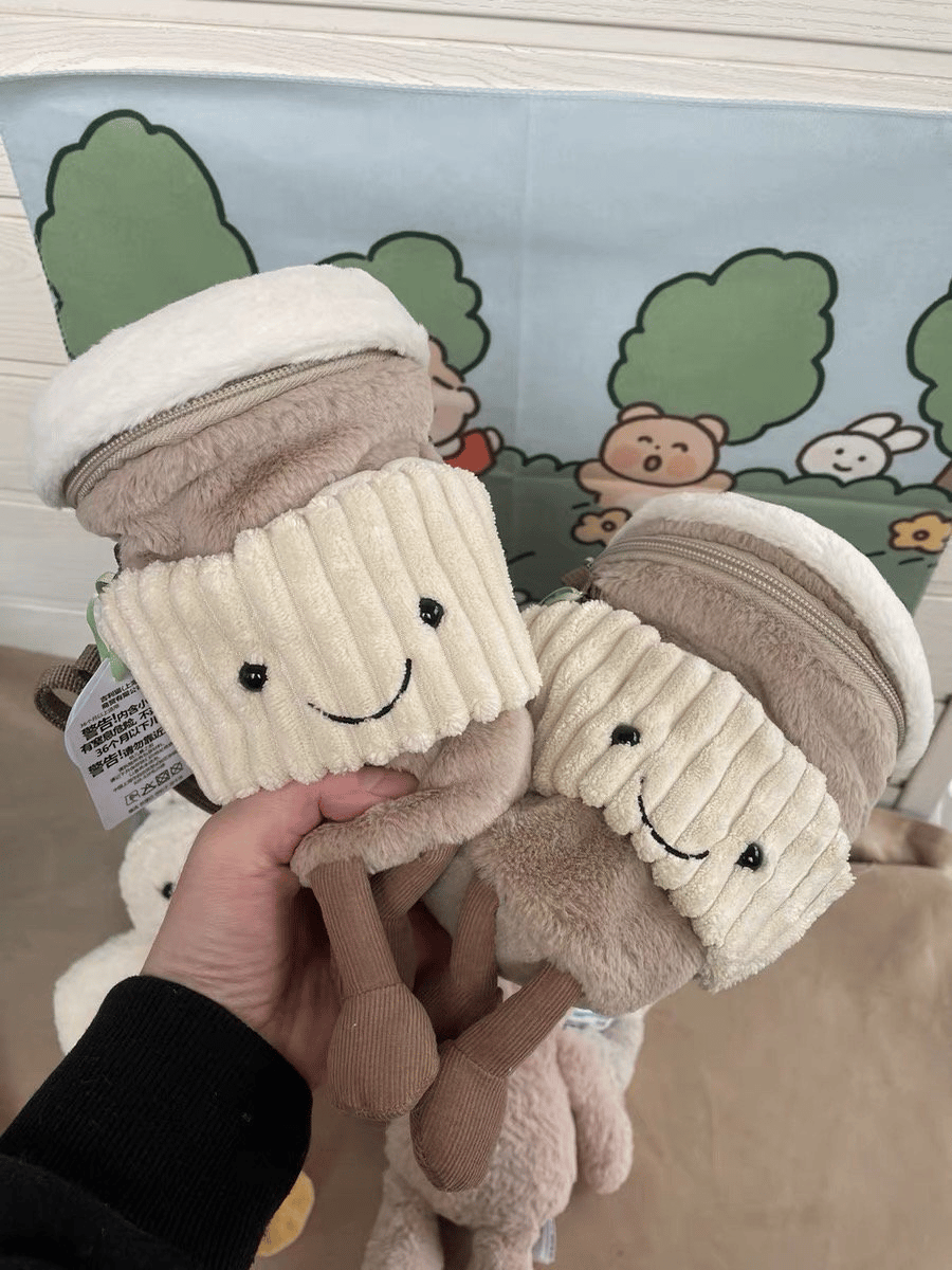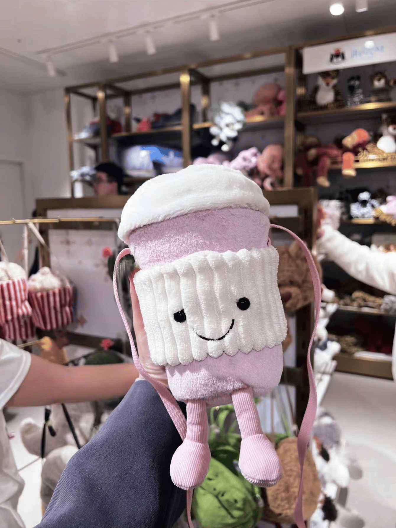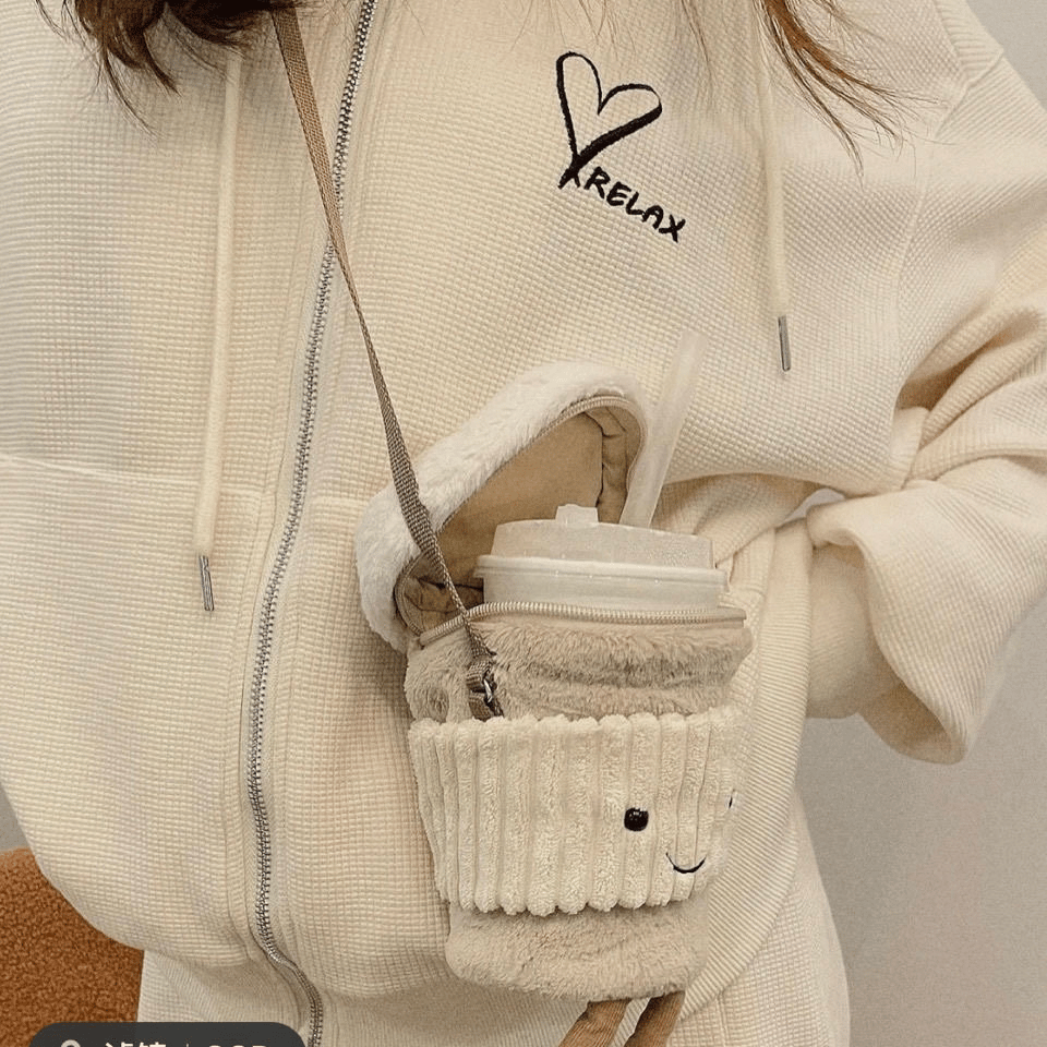 super cute plush cup with a smiling face and little legs. 🥰 Whether you're going for a casual day out or a fun gathering, this bag will add a touch of sweetness to your look. It's such a charming piece that can easily catch people's eyes.